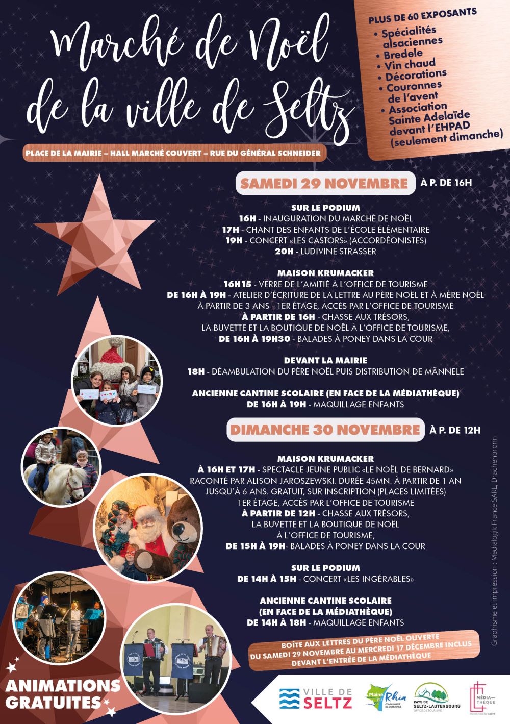 La prochaine édition du Marché de Noël de la Ville de Seltz se déroulera du samedi 29 novembre au dimanche 30 novembre 2025.